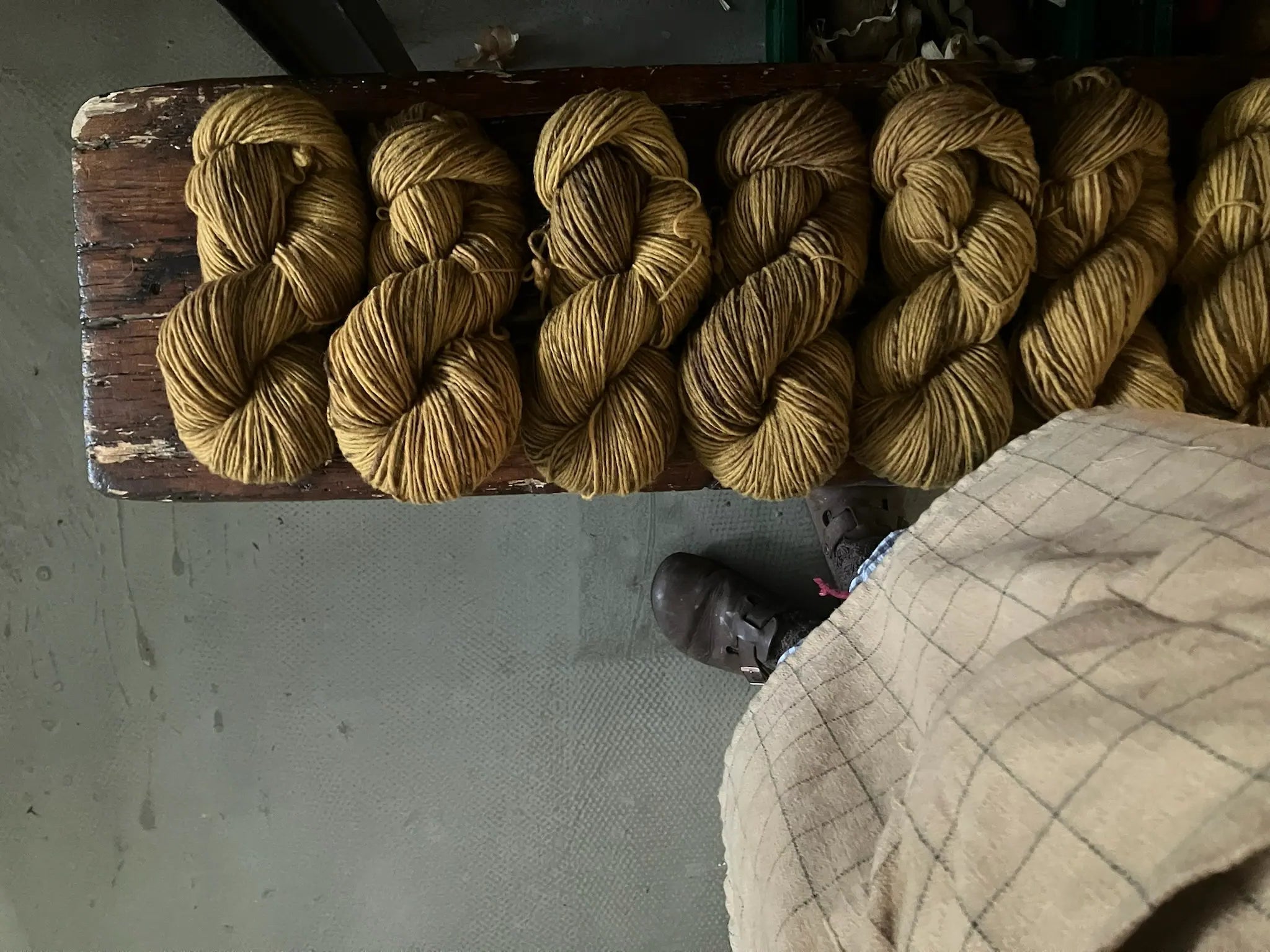 Wanneer je haar garen vasthoudt, voel je die zorg. Elke streng draagt de zachte aanraking van handwerk en de diepte die alleen natuurlijke verf kan creëren. Niets wordt gehaast, niets gaat verloren — alleen aandachtig vakmanschap.