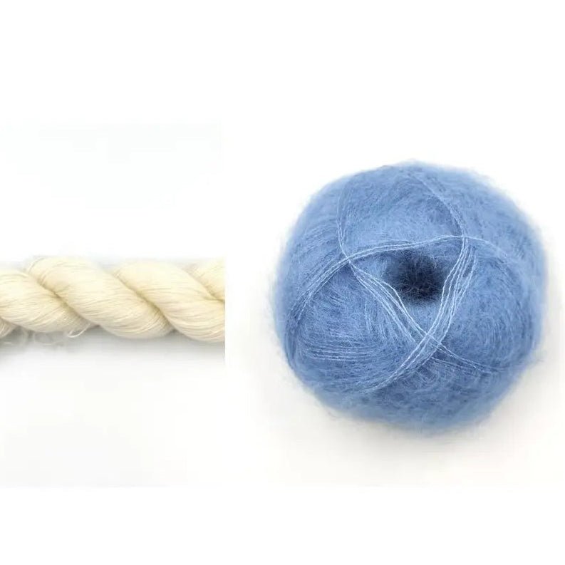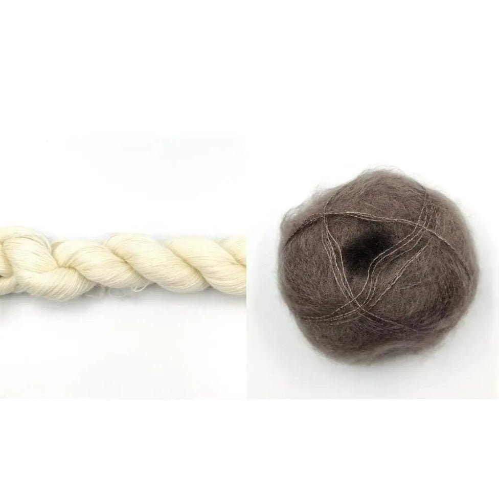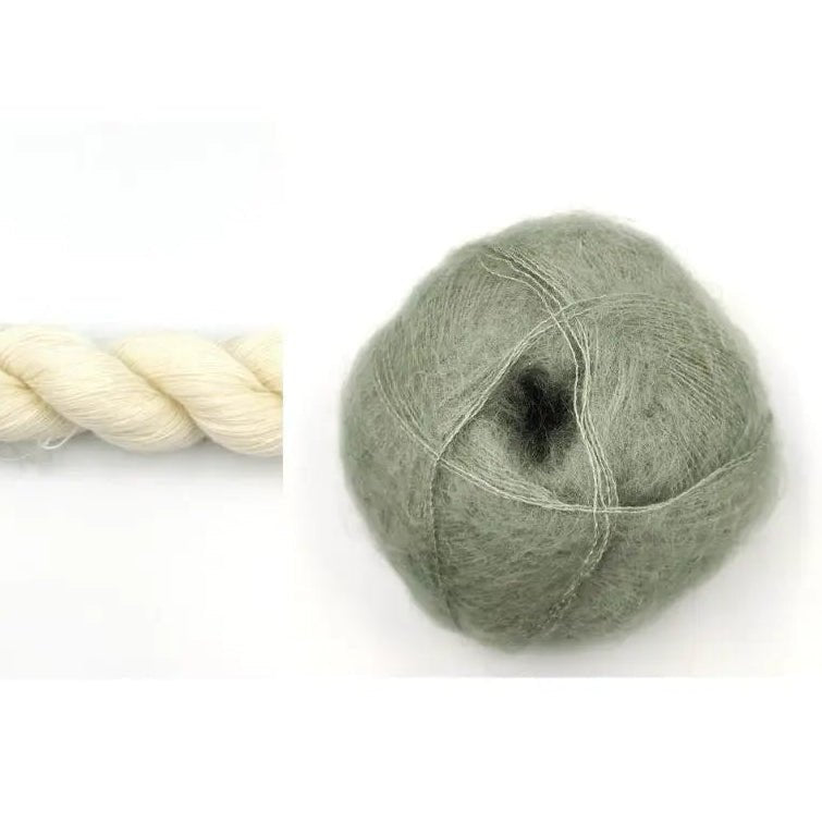 - Mohair by Canard Kid Mohair 1 ply en Brushed Lace – duurzaam RMS-gecertificeerd mohairgaren, in jouw gekozen kleurcombinatie: