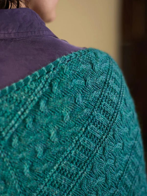 Deze driehoekige shawl bevat verschillende getextureerde steekenpatronen, geïnspireerd op de Spaanse duinen, stranden en boardwalks die de basis vormden voor dit ontwerp. Voor ons sample gebruikten we de kleur Siren, en eerlijk gezegd willen we er nu één in elke Seafarer-kleur! Het garen laat de mix van textuursteken fantastisch uitkomen, en we zijn helemaal weg van de golvende kantstrook van het kantpatroon.